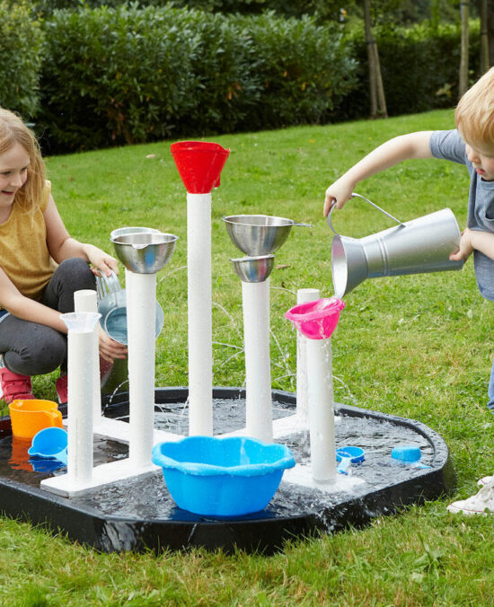 A água e a areia trazem uma dimensão especial à brincadeira e convidam à descoberta através do movimento e da experimentação.