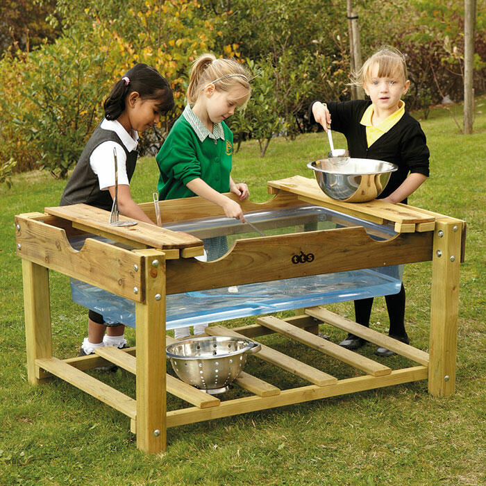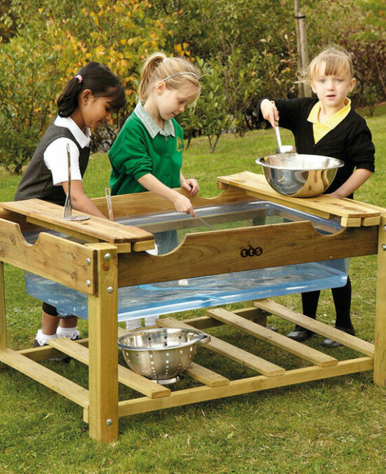 Baldes, moinhos de água, barcos, jogos aquáticos, moldes e outros materiais, permitem moldar, explorar, salpicar, encher e esvaziar, transformando cada momento numa experiência divertida e cheia de aprendizagem.