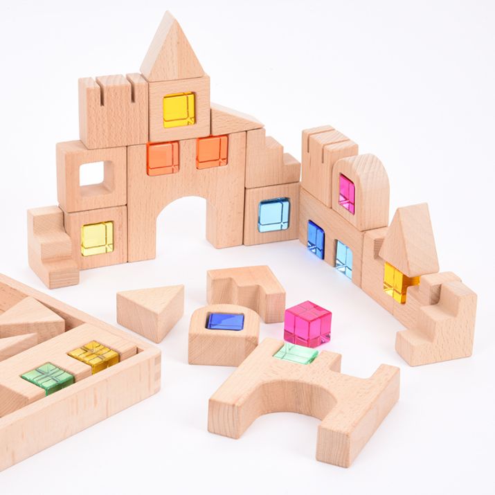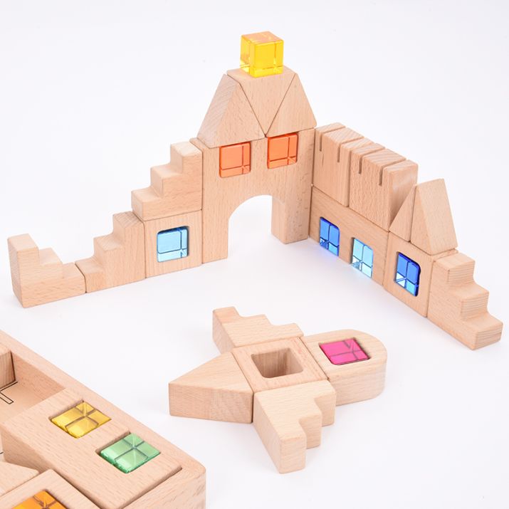 Os belos cubos de gemas coloridas são um complemento perfeito para o jogo criativo, pois podem ser de janelas ou portas a decorações coloridas.