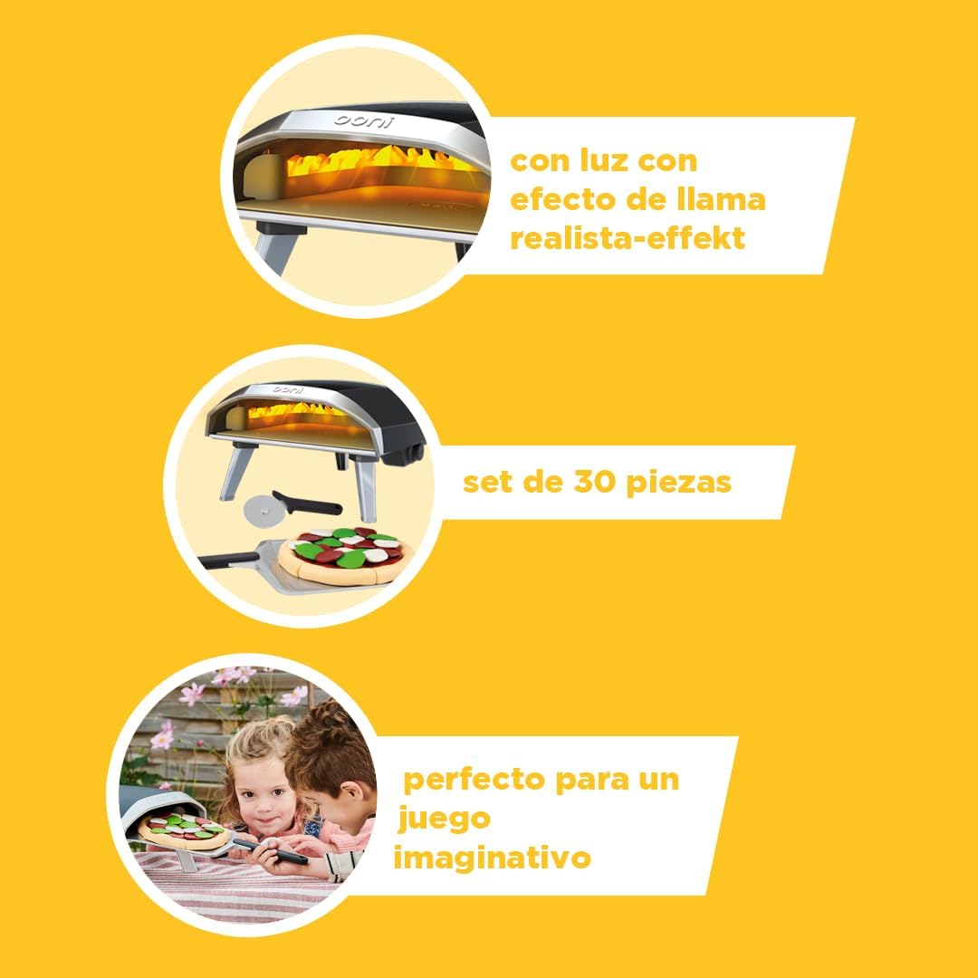 O design do forno, fiel ao estilo Ooni, oferece uma aparência moderna e realista que vai cativar os pequenos chefs. Cada elemento foi pensado para estimular o jogo de faz-de-conta e o desenvolvimento da imaginação.