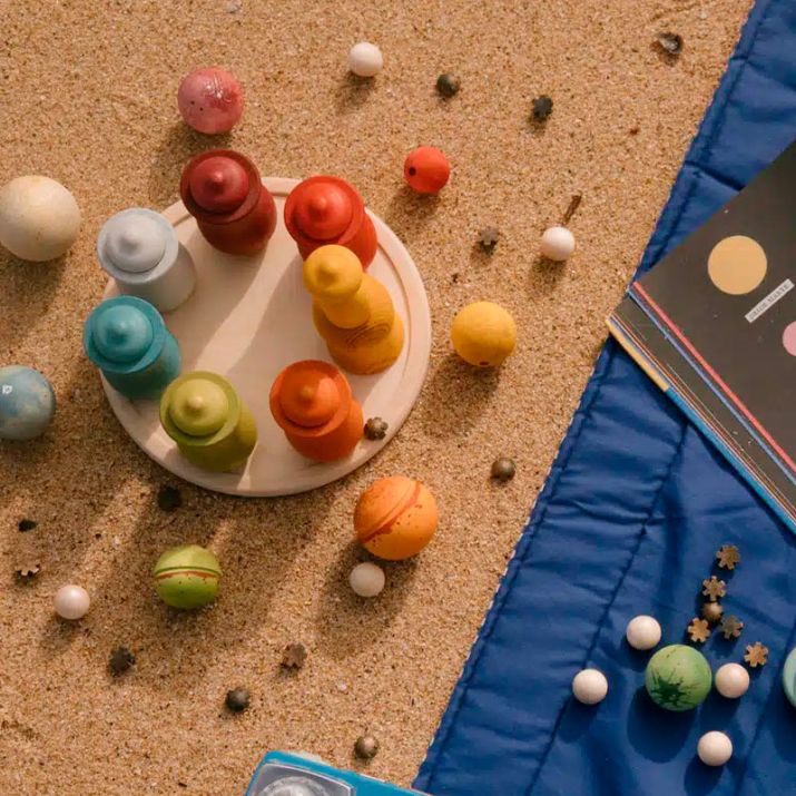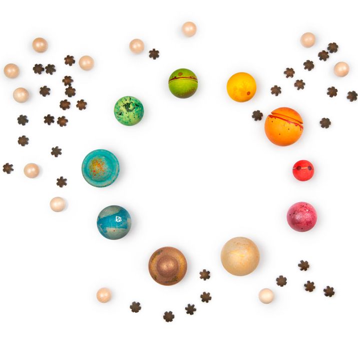 Conjunto de 40 peças em madeira para brincar e explorar o universo, da marca Grapat.