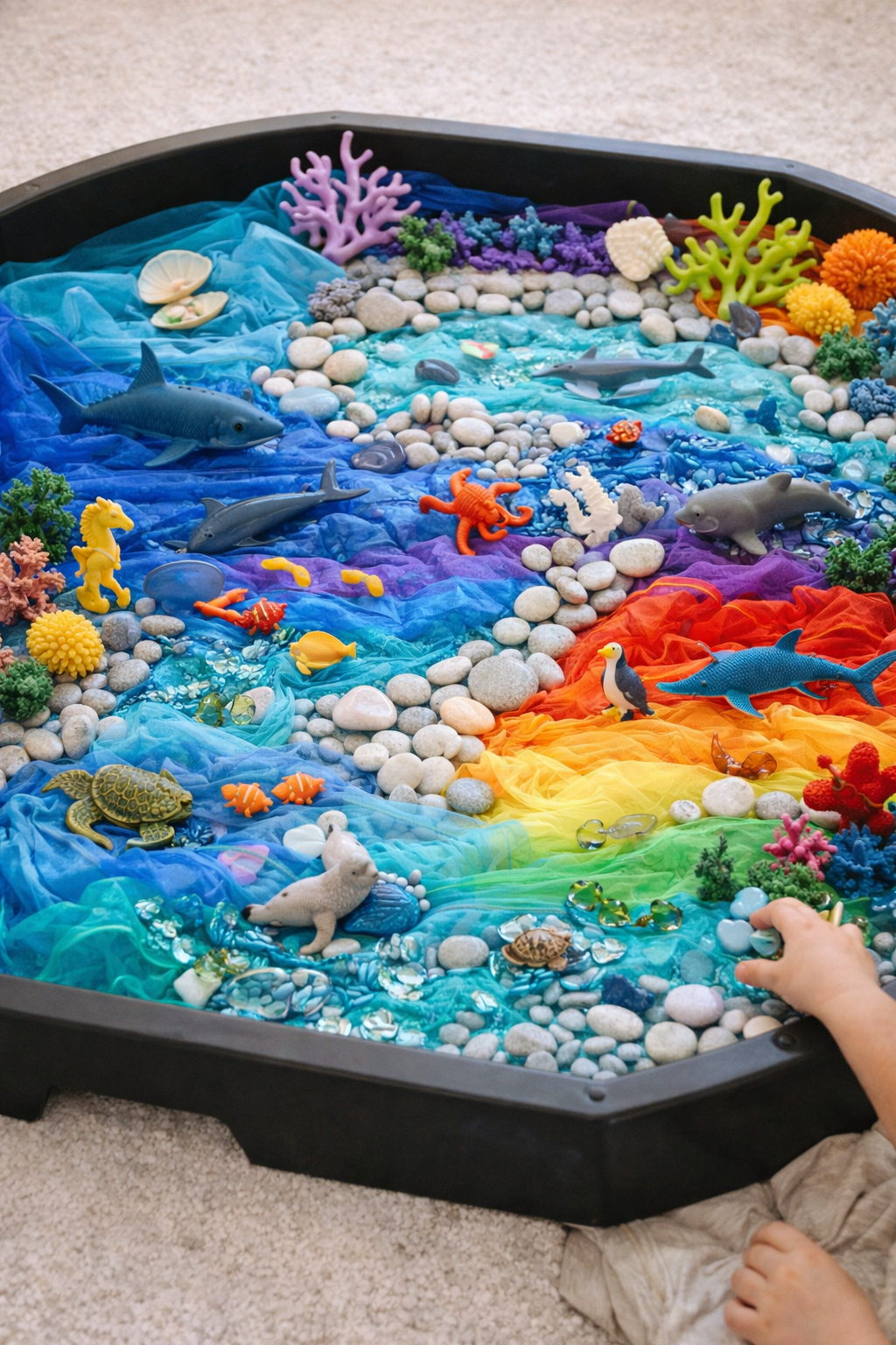 Conjunto de brinquedos de praia em silicone para fazer construções originais à beira-mar ou na areia do parque infantil.