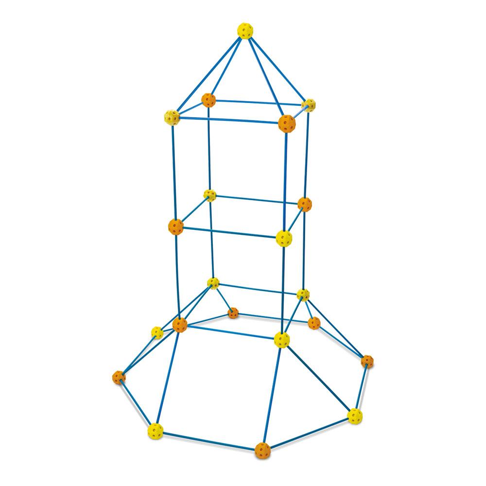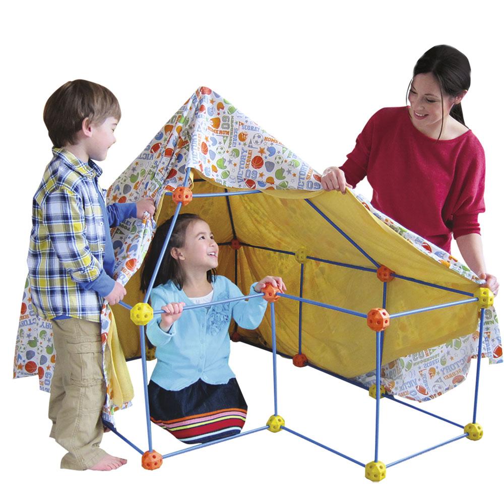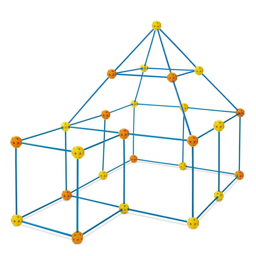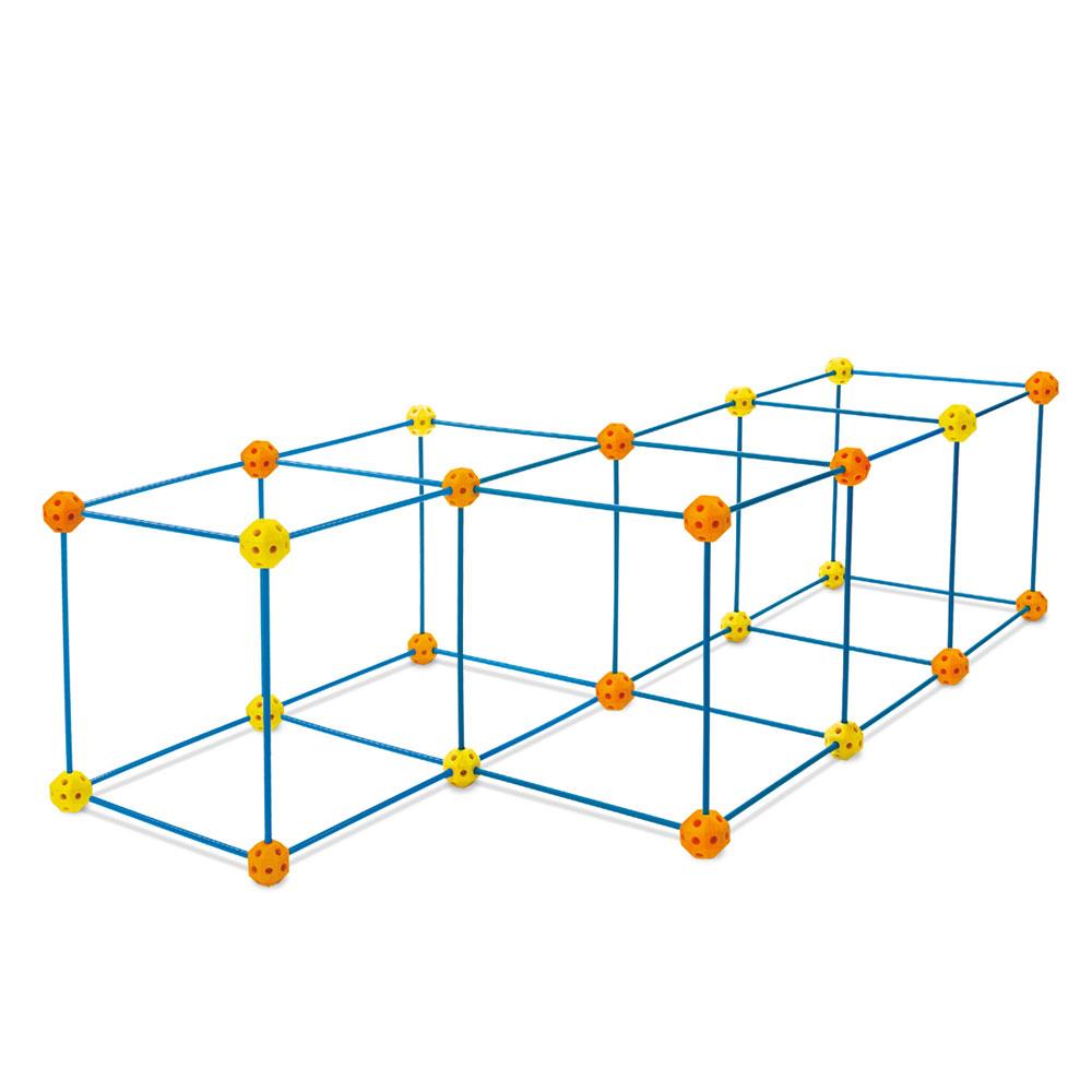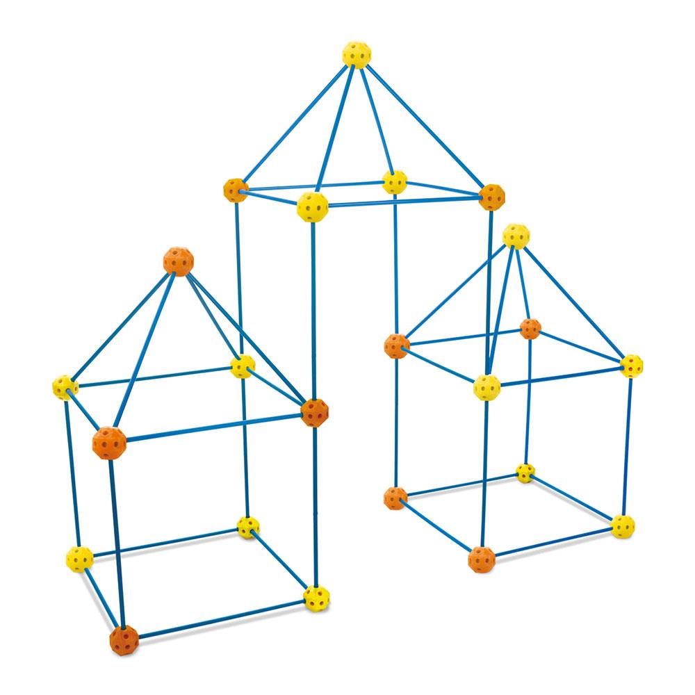 Com 45 hastes e 27 conectores coloridos, podem projetar e montar uma cabana, tenda, túnel, forte ou qualquer estrutura que a imaginação mandar.
