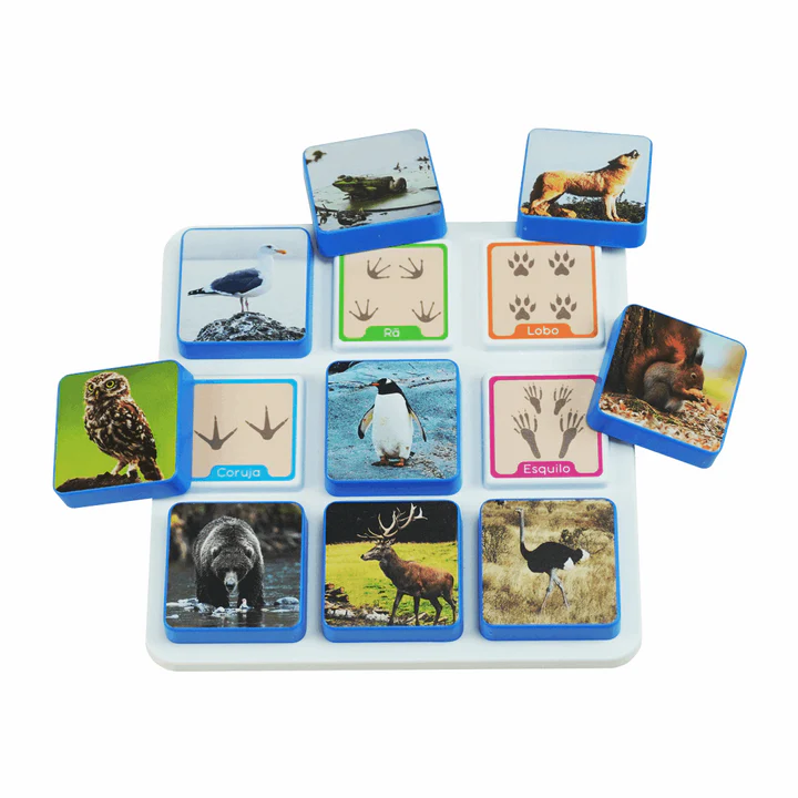 Com ilustrações detalhadas e uma abordagem interativa, este jogo de associação de pegadas ao animal correspondente é ideal para estimular o pensamento crítico e a resolução de problemas de forma lúdica, ao mesmo tempo que trabalha raciocínio lógico e linguagem, já que cada peça contém o nome do animal escrito.
