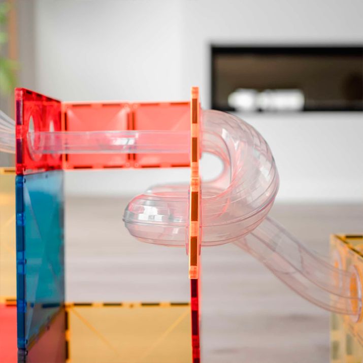 Este novo conjunto da marca, é super completo. Composto por 66 peças, especialmente desenvolvido para os amantes de percursos de berlindes.