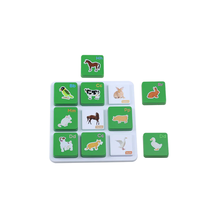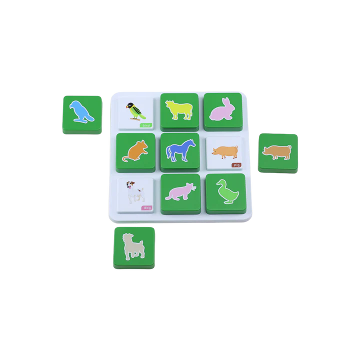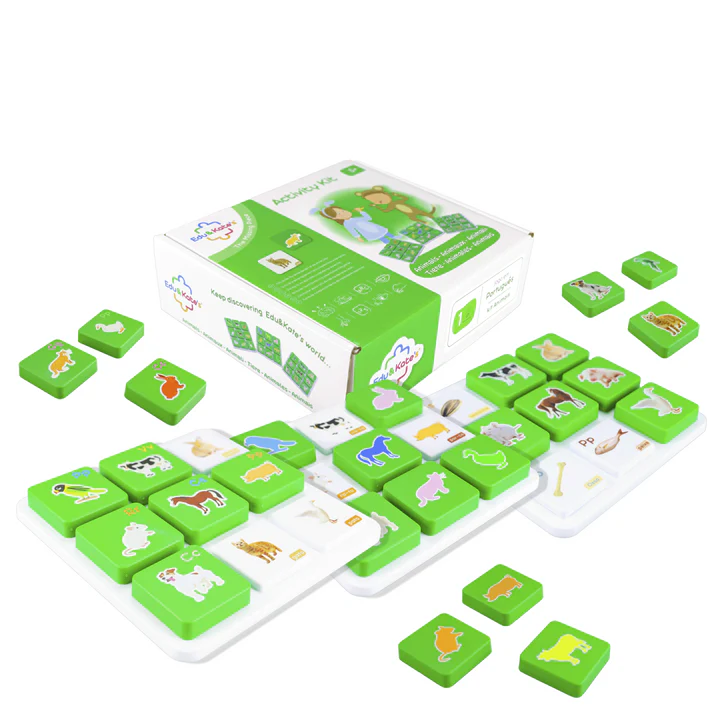 Explora o mundo dos animais domésticos e da quinta, com este kit que apresenta três tabuleiros com peças para fazer correspondência.