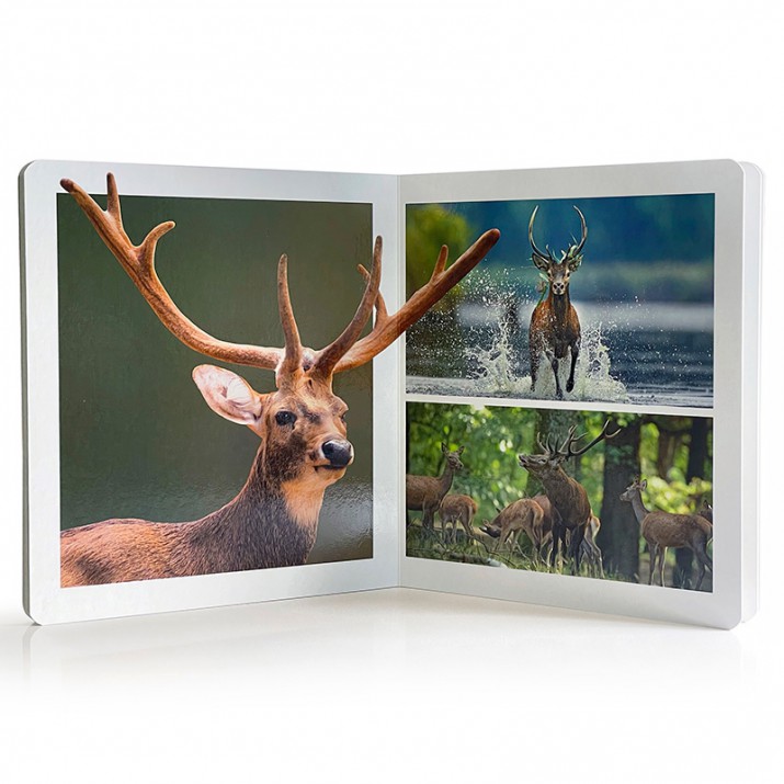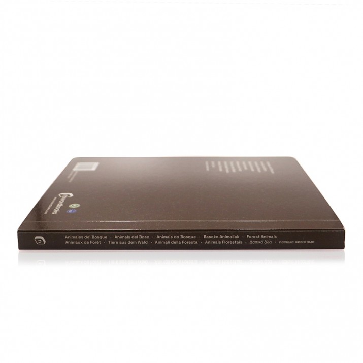 Livro em formato grande, de 20 página, da editora Nowordbooks conta com fotografias reais de animais da do bosque.