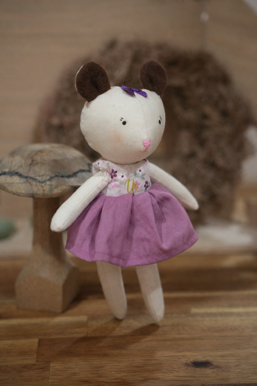 Esta pequena ratinha de pano foi criada para encantar desde o primeiro olhar.