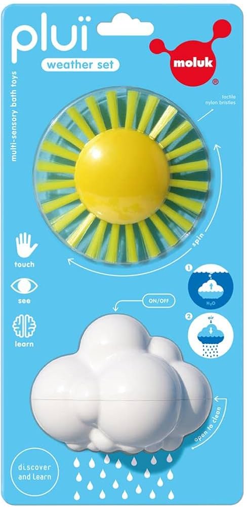 Com um design inteligente, estes brinquedos mostram de forma simples e visual o ciclo da água — “depois da chuva, volta o sol” — ajudando as crianças a compreender conceitos básicos de física através de brincadeiras sensoriais com água.