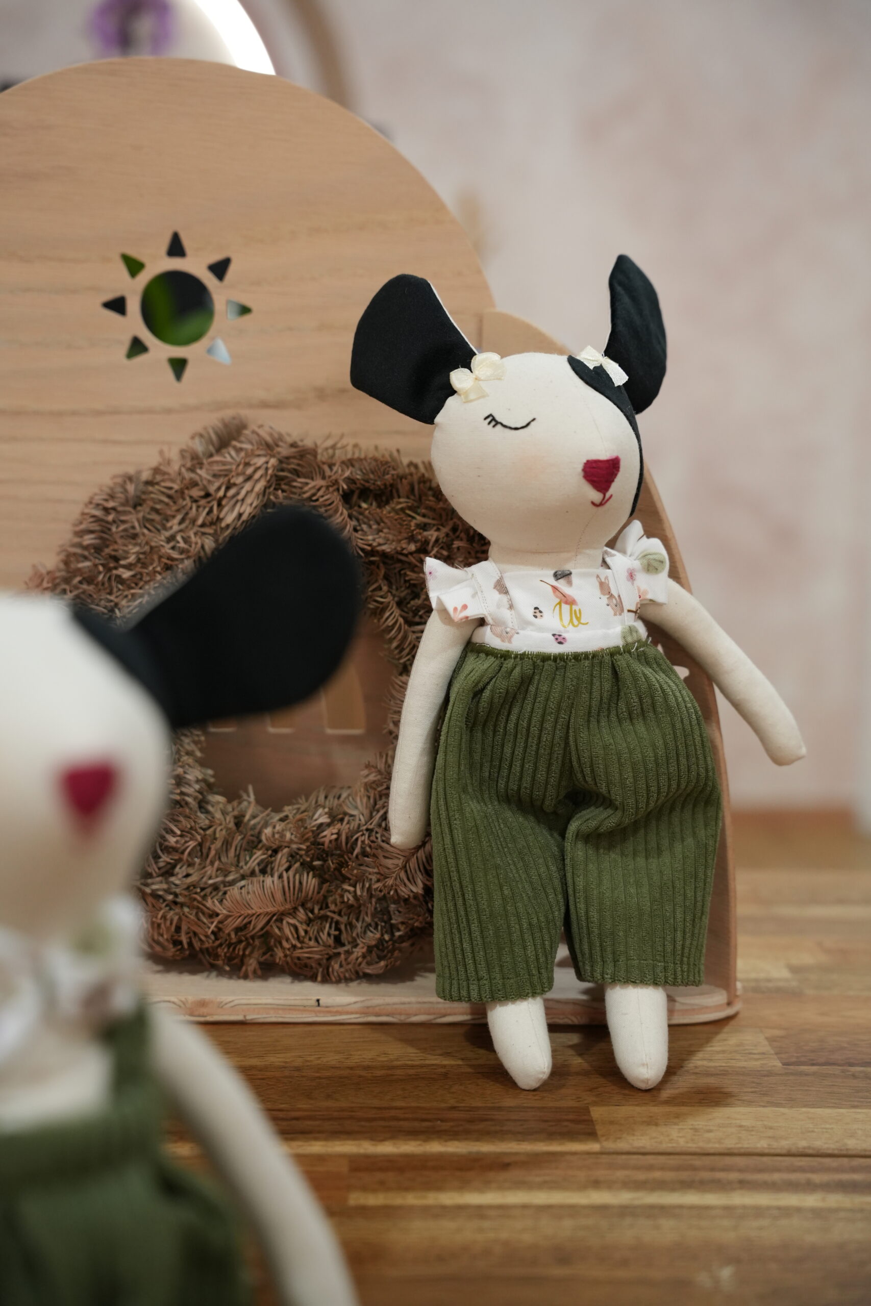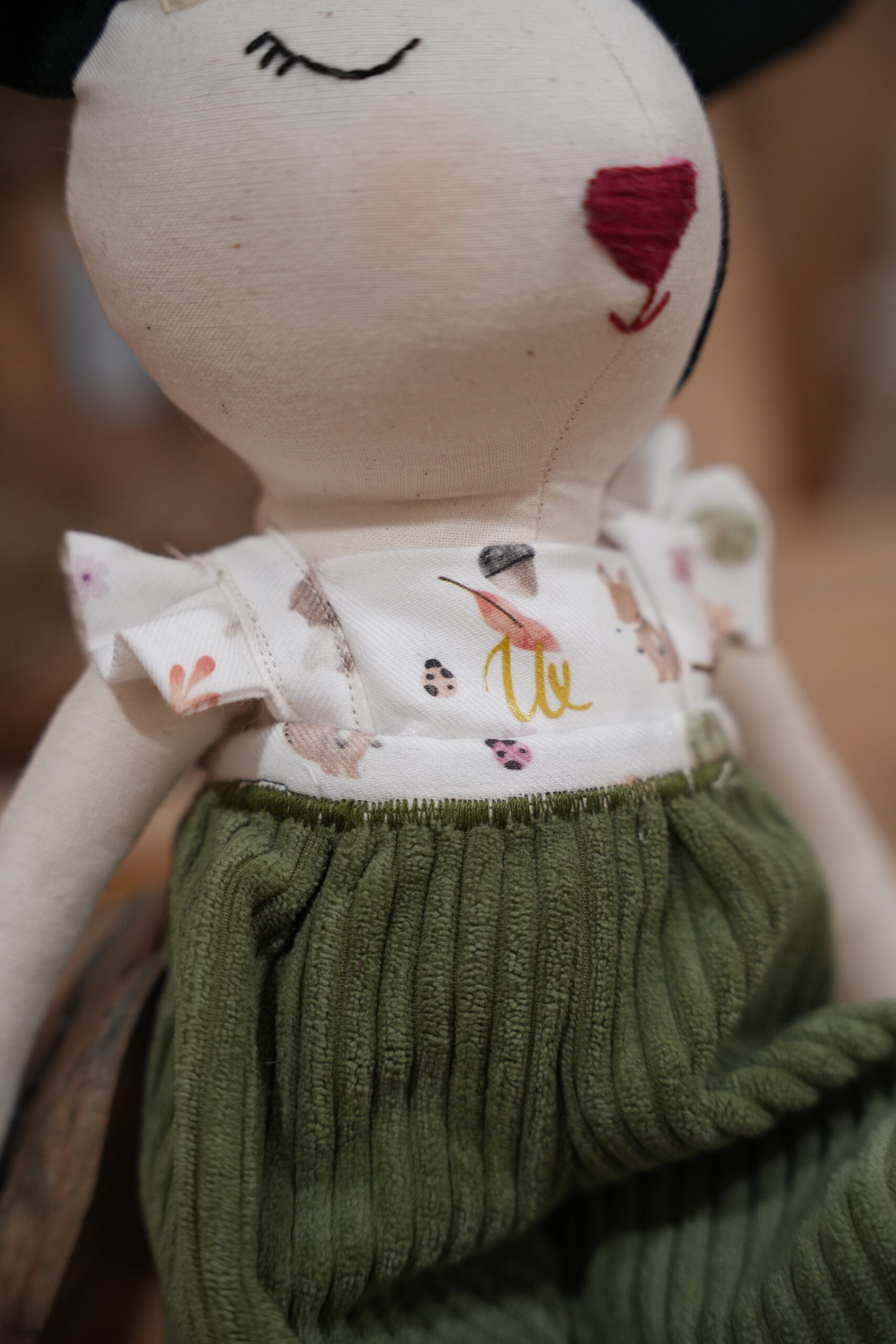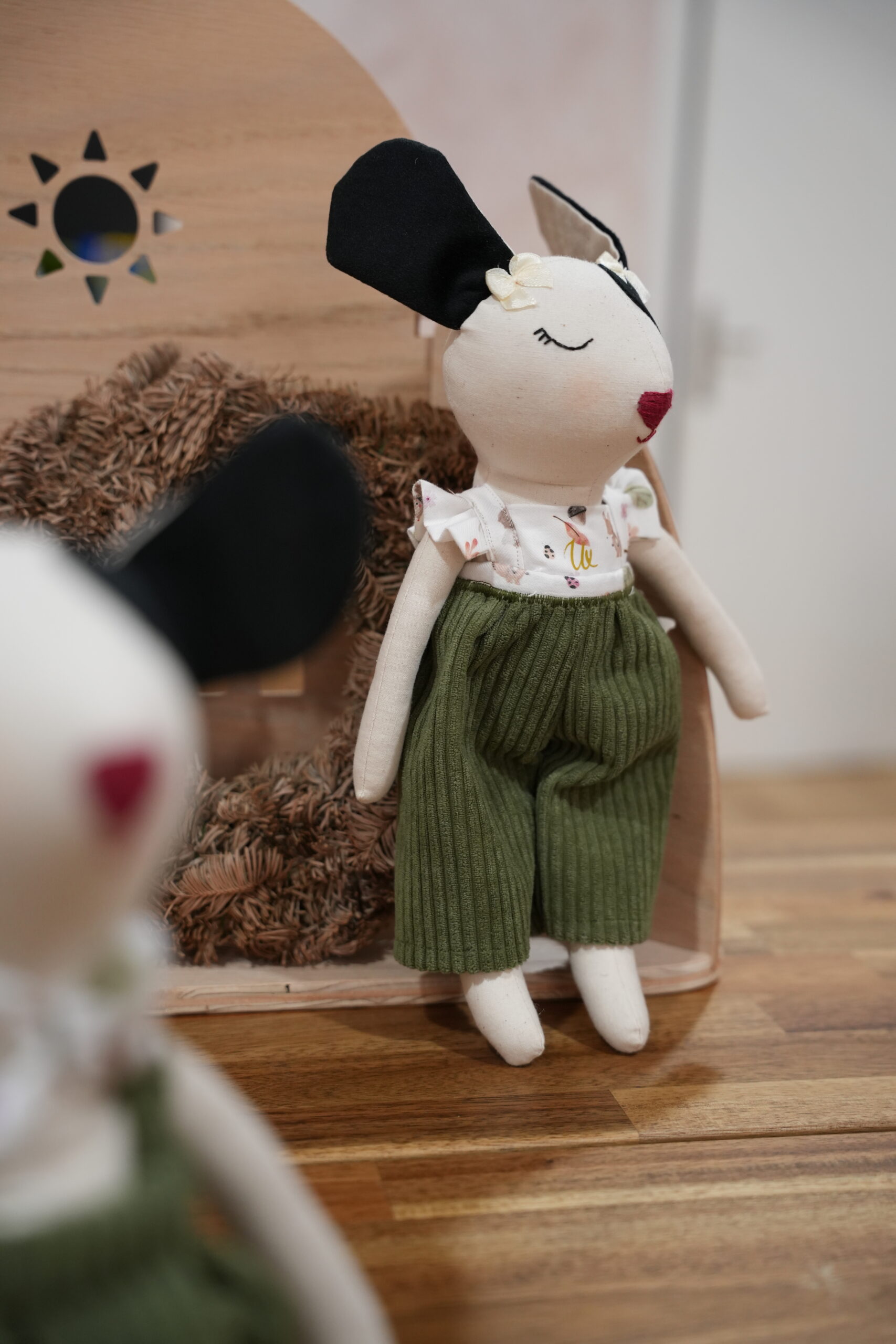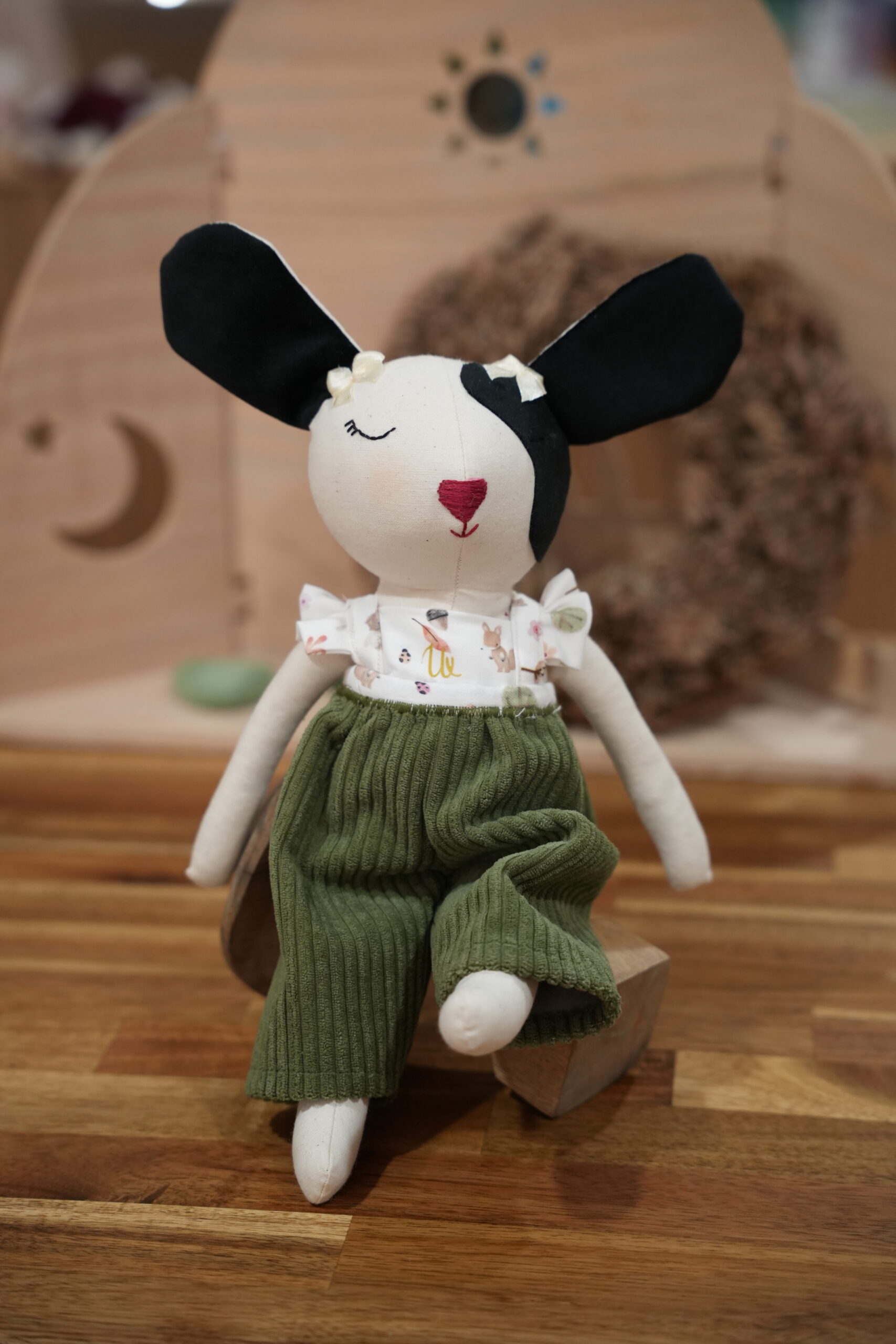 Esta encantadora boneca artesanal foi cuidadosamente feita à mão em Portugal, com atenção a cada detalhe. Confeccionada em tecido macio, destaca-se pelas suas orelhas em veludo, que lhe conferem um toque especial de conforto e elegância.
