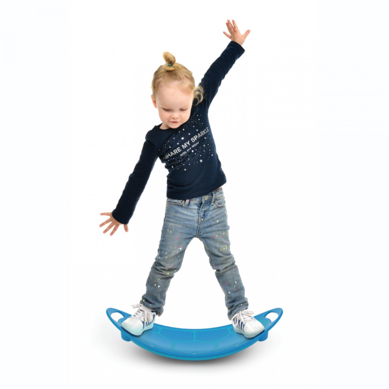 A sua base com hexágonos antiderrapantes garante um movimento suave, seguro e fácil de controlar, permitindo que as crianças experimentem balanços laterais com total confiança.